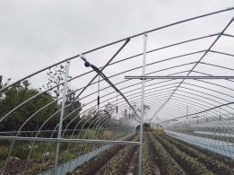 本產品配備了噴滴灌系統(tǒng),電動控制,使大棚內部灌溉十分方便,大大提高了生產效率??筛鶕嶋H生產需要選擇滴管和噴管的條數。