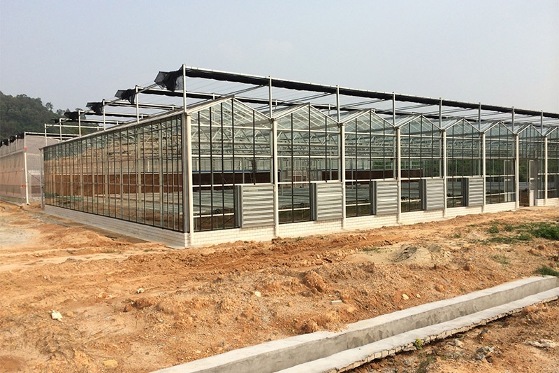 溫室主體骨架采用內(nèi)外熱浸鍍鋅鋼管及鋼板和溫室專用鋁合金型材,專用鋁箔封口,緊固件、連接件及抗老化橡膠密封條等優(yōu)質(zhì)材料,使用壽命大于10年。溫室頂部及四周側(cè)墻采用4mm國產(chǎn)優(yōu)質(zhì)浮法玻璃,玻璃透光率為88%。溫室側(cè)面可設(shè)置推拉窗,頂部可設(shè)置雙向交錯開空窗,通風(fēng)率為27%,齒輪齒條副傳動。可根據(jù)客戶要求加裝電動拉幕系統(tǒng)、內(nèi)遮陽系統(tǒng)、濕簾-風(fēng)機降溫系統(tǒng)、加溫系統(tǒng)、噴灌系統(tǒng)、配電系統(tǒng)、通風(fēng)系統(tǒng)、智能控制等??傊?,整個產(chǎn)品的設(shè)計是利用現(xiàn)代化的手段實現(xiàn)對溫室內(nèi)部溫度、相對濕度、自動控制,為作物創(chuàng)造適宜的生長環(huán)境;同事降低運行成本,提高管理效率實現(xiàn)高品質(zhì)、高效益。主要用于科研實驗、名優(yōu)花卉種植、觀光旅游、生態(tài)休閑、農(nóng)業(yè)育苗等。